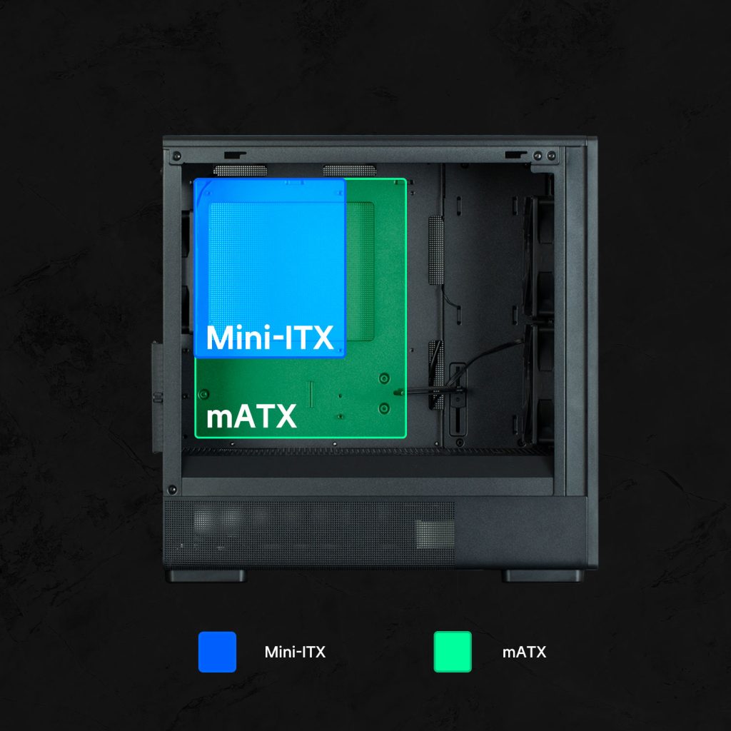 Érdekesség még a ház oldalára helyezett edzett üvegpanel, amely könnyedén, szerszámmentesen eltávolítható, megkönnyítve így a belső hardver szerelését és karbantartását. Praktikus megoldás még az állítható grafikus kártya-támasz is, amely hosszabb, súlyosabb kártyák esetén különösen előnyös lehet.